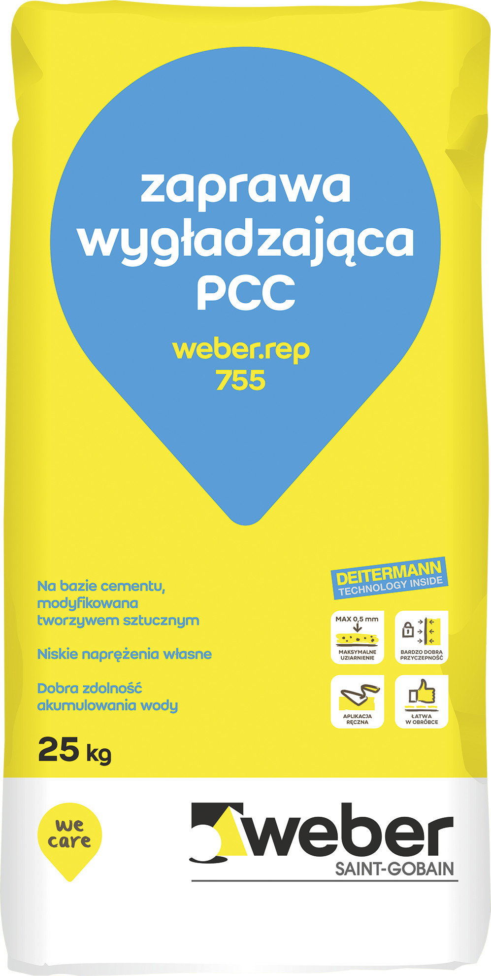Weber.rep 755 stosowany jest szczególnie, jako zaprawa wygładzająca nakładana na zaprawę naprawczą weber.rep 754.