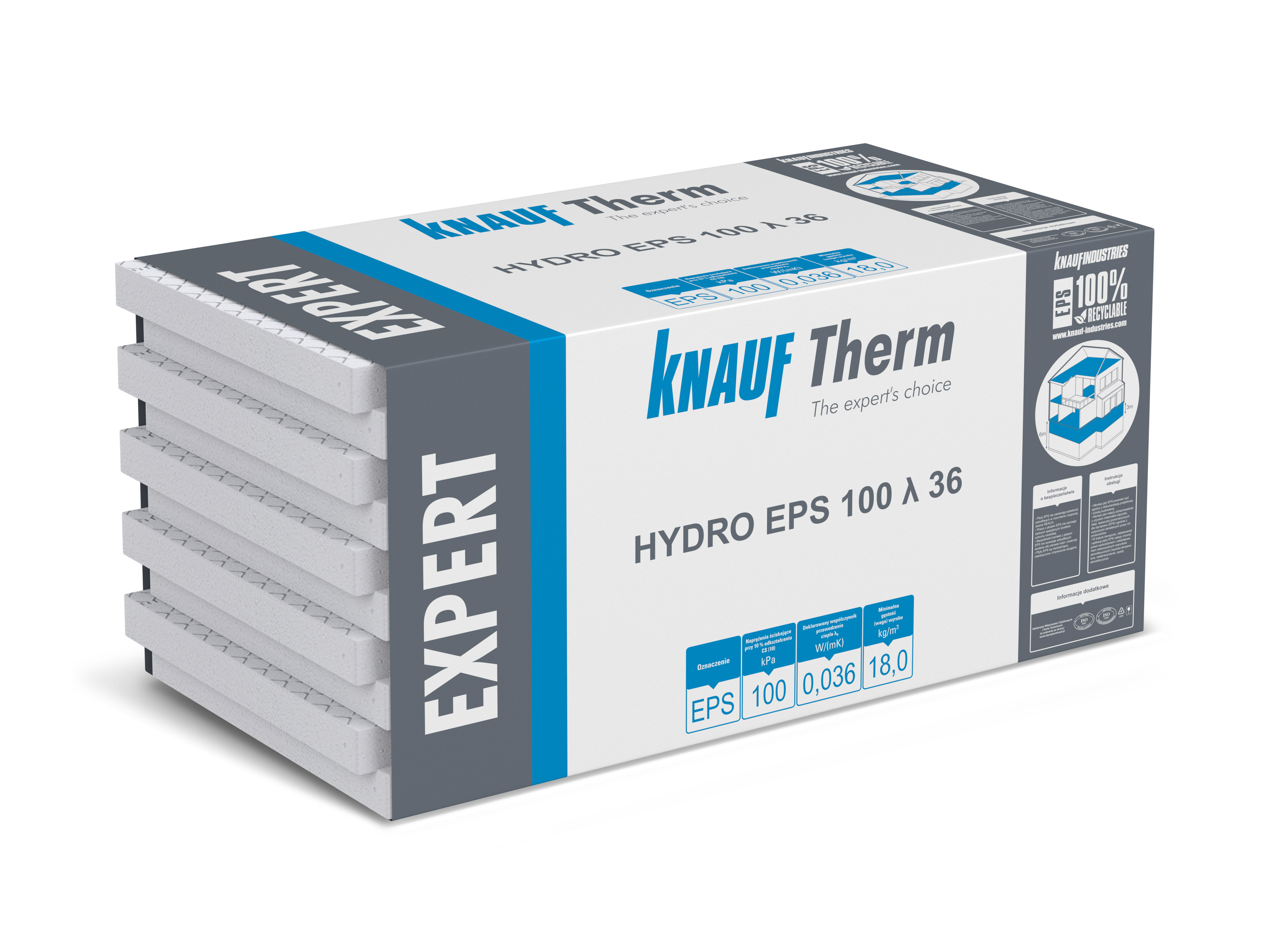 Styropian EPS 100 WODOODPORNY HYDRO 10 cm 0,432 m3, płyta 600x1200 mm