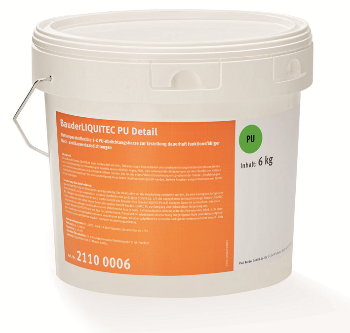 Opis produktu BauderLIQUITEC PU jest 1-komponentowym systemem płynnych tworzyw sztucznych PU ze zbrojeniem w postaci poliestrowej wkładki nośnej. W takim systemie powstaje powierzchnia wolna od spoin i połączeń. Dzięki całopowierzchniowemu połączeniu z podłożem wykluczone jest przesiąkanie wody.