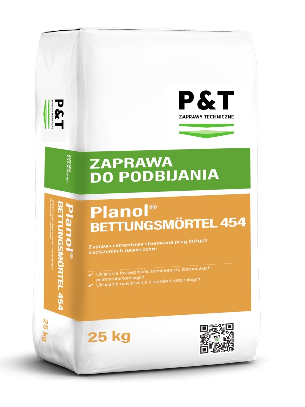 Zaprawa Planol® Bettungsmörtel 454 przeznaczona jest do układania kamienia naturalnego, prefabrykowanych płyt betonowych poddanych dużym obciążeniom, np. ronda, zatoczki autobusowe, czy też ulice lub place obciążone ruchem kołowym.