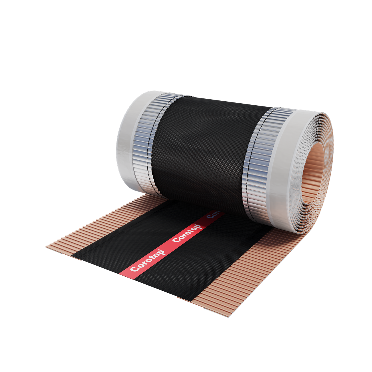Taśma uszczelniająco-wentylacyjna wykonana z dwóch pasów profilowanego aluminiowego laminatu, tkaniny z włókna szklanego oraz butylowych pasów klejących.