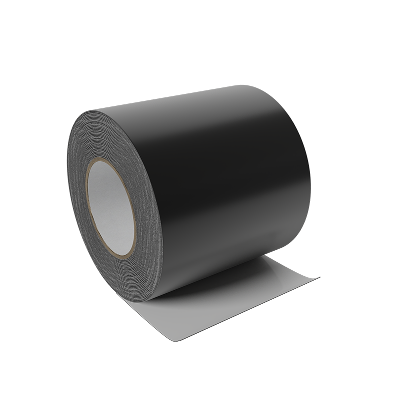 Samoprzylepna bitumiczna taśma izolacyjna z aluminiową warstwą ochronną pokrytą powłoką poliestrową.