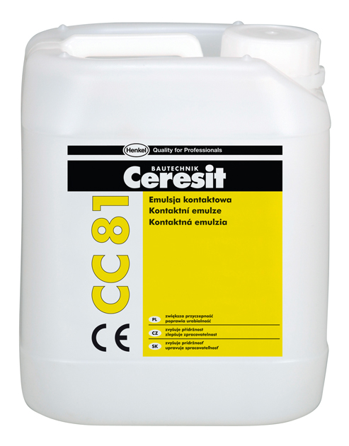 Ceresit CC 81, 10 l, emulsja kontaktowa do zapraw i betonu oraz do wykonywania warstw kontaktowych pod posadzki i obrzutek pod tynki, zwiększa przyczepność, elastyczność i wytrzymałość, skraca czas przesychania