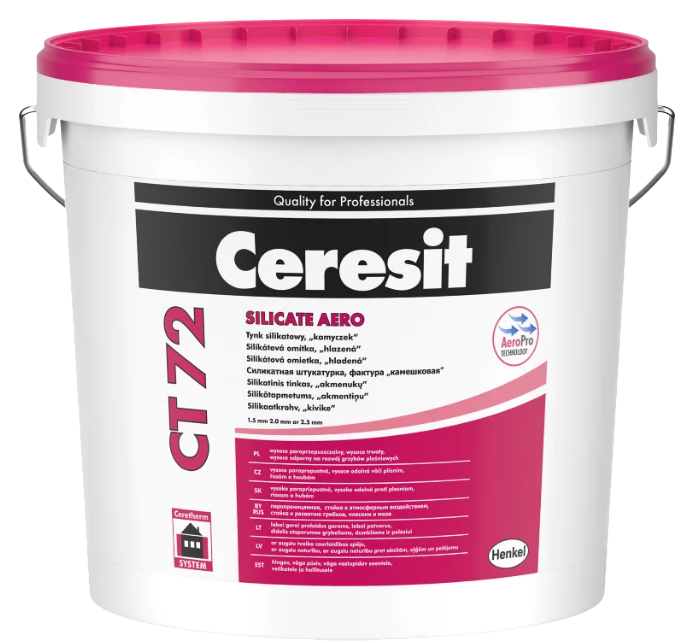 Ceresit CT 72 baza do kolorowania (ziarno 1,5 mm), 25 kg, tynk cienkowarstwowy, faktura „kamyczek”, ziarno 1,5 mm, 2,0 mm i 2,5 mm, dostępny w pełnej palecie barw Ceresit Colours of Nature®